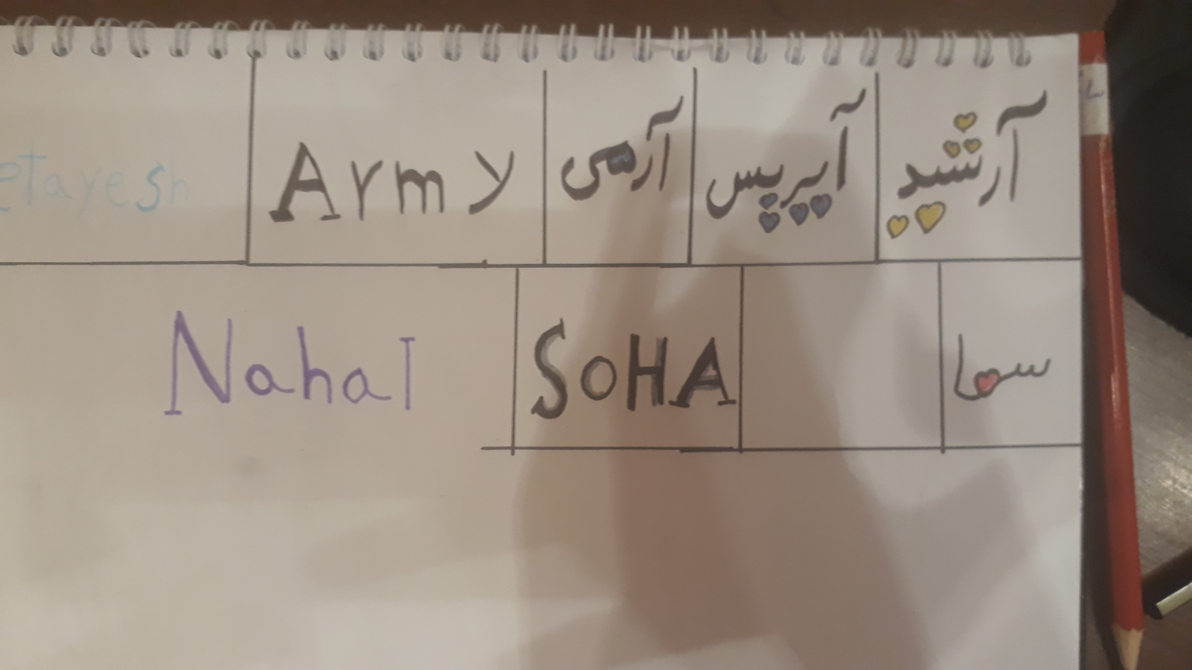 پ.ن.: من نمیدونم تو کلاس چندمی ولی املات رو تمرین کن. مغزم رگ به رگ شد تا فهمیدم چی نوشتی.