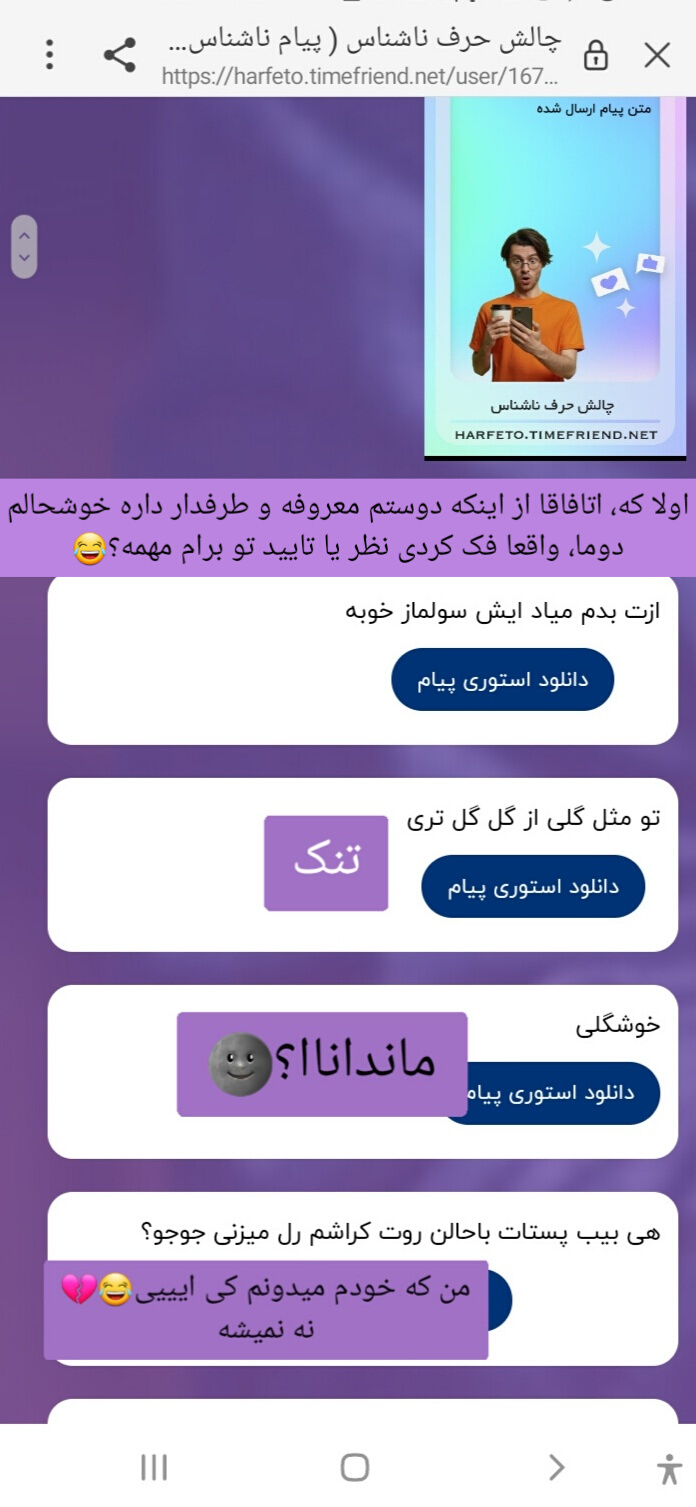 و قبل اینکهه برید ادامه مطلب گفتم یه لینک حرف ناشناسم بذارم که به صورت ناشناس هر زری دوست داشتید بم بگید، اگه جواب دادم تو همین پست میذارمش