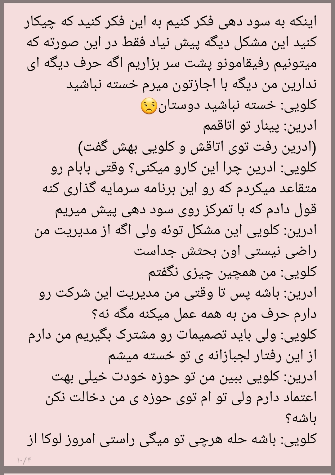 19 شهریور 1402 · · سلام اومدم با پارت 9🙂 کسایی که نتونستن پارت قبل رو پیدا کنن روی متن سنجاق زیر کلیک کنن🙂